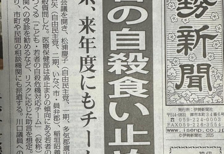 12月5日、一般質問をさせて頂きました 2025.12.16 12月5日、一般質問をさせて頂きました 1.防災対策について (1) みえ防災ナビの活用について (2) 防災意識の向上に向けて 2.オーバードーズ(OD)による自殺対策について 3.若者に必要なSNS対策について 4.若者への性教育について 5.みえの歴史街道の活用について https://youtu.be/Rmo83tTFCgw 質問をさせて頂きました。 FC VALOR杯サッカー大会前の記事 高野餅つき次の記事